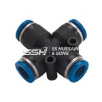 It has push-to-connect metric tube connections on all four ends.